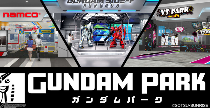 「GUNDAM PARK福岡」以推廣各式各樣鋼彈情報及銷售週邊商品的區域「GUNDAM SIDE-F」為中心,與鋼彈合作的互動型動態遊戲的運動休閒區域「VS PARK WITH G」、包含大型機台與夾娃娃機的電子遊樂場「namco」等3個區域所構成。