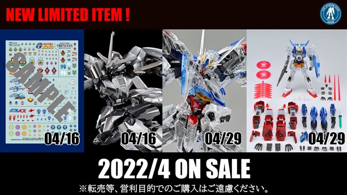 另外,「MG 鋼彈AGE-1 裝甲系統組合包[透明配色]」和「MG 星蝕鋼彈[透明配色]」在4月29日(五),「HG 翼魔鋼彈[鐵血鍍膜]」在5月發售,也請不要錯過。