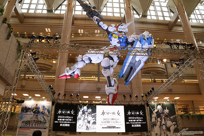 SAKATA SEED Garden Square首次展示了『水星魔女』主角機「風靈鋼彈」全高約7m的氣球。每小時00分、30分還會藉由影片及燈光來做特別表演,所以請務必配合演出時間前往看看。