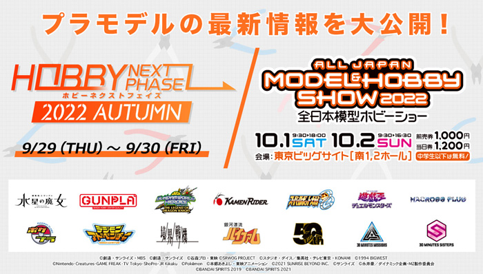 各商品皆於本週末10月1日(六)・2日(日)在東京國際展示場南1・2廳舉辦的「第60屆全日本模型HOBBY SHOW」上展示,所以請務必前往看看。門票為預售票1,000日圓(含稅)、當天票1,200日圓(含稅)、國中生以下免費進場。