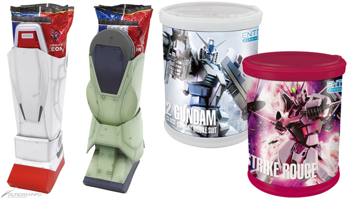 除了餅乾之外,「薩克」附有機關槍彈型罐子,「鋼彈」的則有盾牌型的罐子。