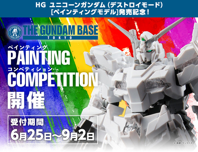 鋼彈模型複合設施「THE GUNDAM BASE TOKYO(鋼彈東京基地)」內,將自6月25日(一)起舉辦紀念「HG 鋼彈基地限定 獨角獸鋼彈(毀滅模式)[PAINTING MODEL]」發售的活動「PAINTING COMPETITION」。