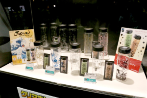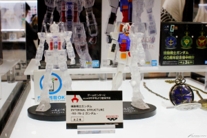 鋼彈官方咖啡廳「GUNDAM Café」展出了現正好評舉辦開催中的「鋼彈40th記念BEYOND祭典」獨家週邊商品,以及結合鋼彈與「Japan Design Collection」,融入能夠象徵及連想到日本的事物作為構想發揮”和”的設計的透明水瓶等各種週邊商品。