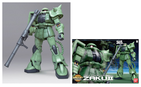 令所有鋼彈迷神往的超大比例!MEGA SIZE「量產型薩克」帶著追加裝備登場!附贈有著角的指揮官用頭部零件!重現了量產型薩克的噴射背包、腳部噴射孔等推進裝備!並附贈從夏亞專用薩克而來的新武裝「薩克火箭筒」以及專用手部零件!
