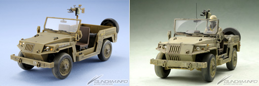 『機動戰士鋼彈 MS IGLOO 2 重力戰線』裡登場,地球聯邦軍廣泛運用的「M72 1/2t軍車 LAKOTA」與吉翁公國軍的輕機動車「機甲戰車」。由自願組成的「塑膠模型1/1改造會」與SUNRISE的全面協助所製作的兩輛1/1“實車”寫真集,終於要在7月30日 (六)發售囉。