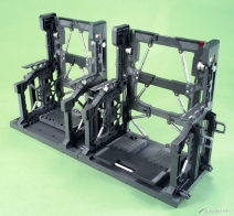 充滿臨場感展示的SYSTEM BASE登場!背面零件搭載了左右伸縮機能與傾斜機關之外,底部的踏板還能裝著與伸縮!另外側邊與其他零件的鉤子組合就能追加可以調整高度的武器架!
