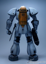 結合了各種MSV零件製作出的高機動型亞格。雖然是隨意排列各部位的新造零件,但頭部的飛彈發射器能夠感覺到當時的衍伸型亞格的模樣,這一點相當不錯(而且採用的是HG巴庫的零件,鋼普拉視野廣泛度也值得稱讚)。雖然是以混和組裝為主,但在整體上完全沒有不自然感,正是選擇使用零件的平衡感與細緻的作工、塗裝的關係吧。(電撃HOBBY雜誌 副編集長,木村學)
