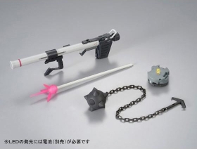 商品內容有可以讓鋼彈最令人印象深刻的眼睛發光的黃色「LED 元件」、以及可以擺出各種姿勢的「超級火箭砲」、「光束戟」、「鋼彈流星鎚這三種武器」,能夠讓 Ver.3.0 變得更加有趣。