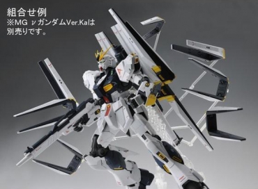 「MG 1/100雙倍翼狀感應砲擴充零件」可搭配好評發售中的「MG ν鋼彈Ver.Ka」來組合,可以重現左右背後各有6枚翼狀感應砲的「雙倍翼狀感應砲樣式」。