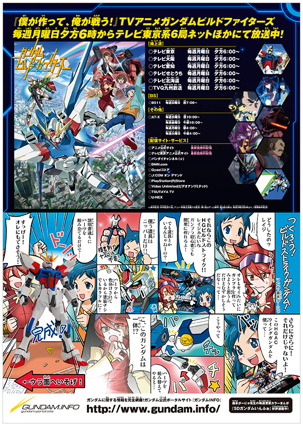 在全國超級市場和家電量販店的玩具商品區、以及台場的東京鋼彈最前線,現在正在發送「鋼彈創鬥者」的鋼彈模型特製傳單。