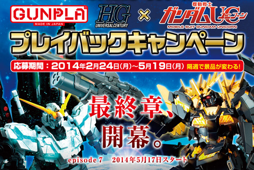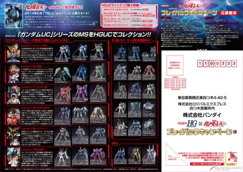 為了替機動戰士鋼彈UC episode 7「彩虹的佊方」的影像展開來暖身,從今天2月24日(一)起以『鋼彈UC』HGUC系列商品為對象的「鋼彈模型HGUC×機動戰士鋼彈UC 回顧活動」開跑了。
