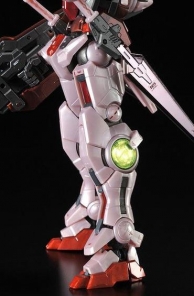 外装零件採用了呈現出光澤感的光澤射出成形,忠實地重現了散發紅色光芒的機體色。此外,為了講究發光的感覺,「GN電容器」以在內部貼上鋁箔貼紙和透明淺綠成形色的透鏡零件重現了。