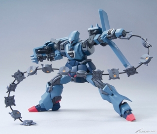 根據實機考證,追求將水的阻力減到最小、可以高速移動的流線型造型!可在水裡高速潛航、又能在陸上戰鬥的柔軟性,採用水陸兩用才有的新型先進MS內骨架結構!