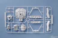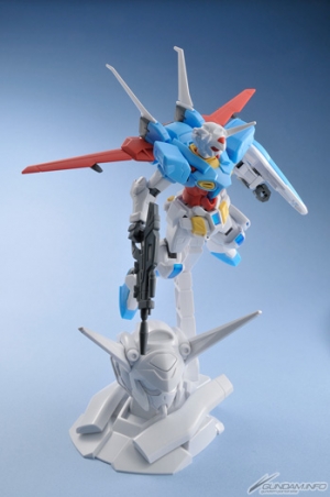 極具特色的頭部設計,使用了「HG 鋼彈 G-SELF」的設計資料,以1/48的比例精準重現。展示用能透過支架的底部回轉軸,以及支架中央附近、鋼彈模型連結部的兩處可以改變角度的構造,以各種角度來展示缸但模型。