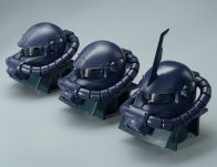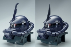 「1/35 薩克頭像(黑色三連星配色Ver.)」是以全新零件和細緻細節,來重現“黑色三連星”駕駛的「高機動型薩克II」頭部,並且是套將這個「1/35 薩克頭像」跟岩石造型的兩段式「展示座」成套推出的展示商品。
