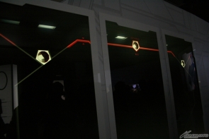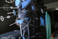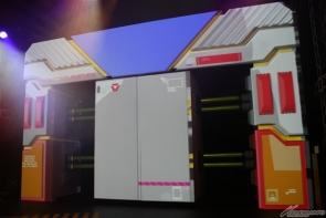 ▲閘門型螢幕投影了大魄力影像!此外,中央仿造沖床的部分打開時,零件就彷彿浮在空中一般!