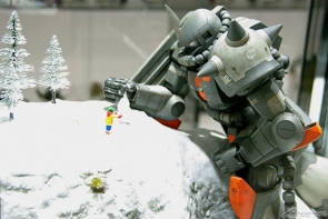 而在三件得獎作品中,我覺得不管哪件被選為第一名都當之無愧;在分數差距就是如此接近的評選中,獲選為第1名的作品有著獨創性,以及不拘泥於鋼彈模型裡的靈活創意。而我最先注意到的,是在機體表面上的"自衛隊"圖樣,想像著宇宙世紀的日本會不會有自衛隊而樂在其中,是件很有意思的作品。」