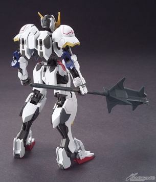 『機動戰士鋼彈 鐵血孤兒』中登場的主角機獵魔鋼彈以滿載遊玩價值的樣式鋼彈模型化!是可以重現故事中登場的2種形態的兼容規格,利用分割零件和貼紙的表現,忠實重現設定色!部分外裝與武裝可以與其他套件零件進行換裝,能夠享受多樣化的改裝樂趣!並附屬狼牙棒和太刀等等故事中登場的武裝!