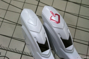 ▲接著是腳部。接上細細的貼紙。腳部的後面也看得到框架。