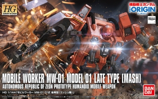 『機動戰士鋼彈 THE ORIGIN II 悲傷的阿爾黛西亞』中,由測試駕駛員 “黑色三連星”馬修所駕駛的「機動工兵 MW-01 01式後期型」套件化!精細的模組重現工程機械班的細節、表現真實的質感!腳部和身體部分的纜線採用合成橡膠(軟質素材),實現粗重細節和可動性的兩立!兩腕搭載與「HG 原型古夫(戰術實驗機)」共通規格的附加機構,可以互相交換!