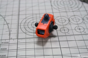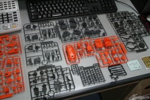 ▲首先從身體和腰部開始。背部的動力用融合爐和本體連接的管線是使用柔軟的合成橡膠素材真實地重現。