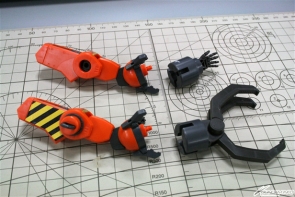 ▲左腕的手部零件有張開和緊握2種,可以好好地握住盾牌。