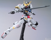 『機動戰士鋼彈 鐵血孤兒』中的主角機「獵魔鋼彈」以1/100的比例套件化!重現故事中設定的内部框架構造的細節,是製作感超群的式樣,同時又有限制零件數量,同時兼顧製了製作的難易度!搭載滑動構造,可以變形成收納/展開狀太的滑空砲,並藉由連接零件可以懸掛在噴射背包後的太刀等等,附屬機構充實的武裝!