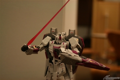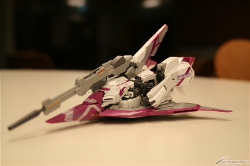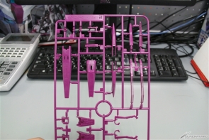 ▲最後把手腕組上,這樣基本的本體就完成了。白與灰中的紫色,確實相當顯眼。