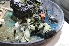 「ザクの表現もさることながら、ジオラマとしての世界観を作り上げる能力は、オープンコースにも引けを取らないレベルだと思います」(バンダイ ホビー事業部 安永)