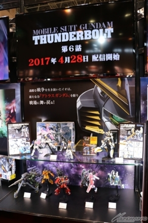 BANDAI攤位則帶來『鋼彈創鬥者 GM的逆襲』及『鋼彈創鬥者 BATTLOGUE』最新鋼彈模型,以及「機動戰士鋼彈 鐵血孤兒 月鋼」、第2季好評公開中的『機動戰士鋼彈 雷霆宙域戰線』、決定於6月23日(五)起公開的『機動戰士鋼彈 Twilight AXIS』、預定9月2日(六)起在全日本電影院上映的『機動戰士鋼彈 THE ORIGIN 激戰 魯姆會戰』等等,與各鋼彈系列搭配的鋼彈模型,以及其他的角色塑膠模型也大量展出,堪稱盛況空前。