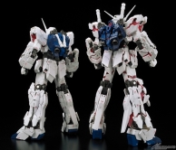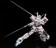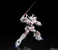 「獨角獸鋼彈」配合立像化以大型模型登場!全高約452㎜,系列史上最大級尺寸,部分肩部裝甲等各處、本體重要部位則採用了陰影鑄型!藉由比以往鑄型方式更能深入的來雕刻,更凸顯陰影,光組裝起來就能表現出宛如片中的立體感!附有光束麥格農和盾牌,還可將光束軍刀的刃部特效,裝在雙腕來重現光束拐棍!