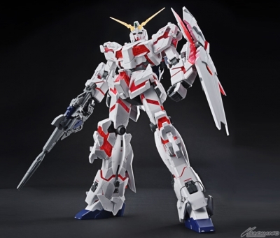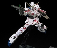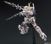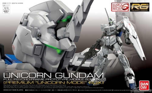 GUNPLA EVOLUTION PROJECT第2彈,追求寫實感外型並重現變身機構的「RG 獨角獸鋼彈」終於登場!「EVOLUTION POINT」為“TRANSFORMATION(變身)”,實現了在1/144比例這個限制中,超越極限後的變身!搭載了3種機構的新構造“進階型MS骨架”,兼顧了組裝後的高安定性和各部位的可動性!除了普通版包裝外,還有初回限定包裝[PREMIUM“UNICORN MODE”BOX]!