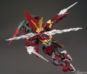 『鋼彈創鬥者』新計畫中登場的鋼彈模型超快速HG化!背包除了能變形成包覆全身的披風型態外,還能作為大型手裏劍來裝備!另外,前裙甲也能夠變形成劍來裝備!裝備在手腕上的刀刃能靈活地移動,可重現如忍者一般的姿勢!