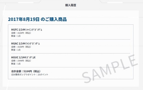 另外,在我的頁面除了能確認購物紀錄及剩餘點數外,還能從網站內或經由電子郵件收到超值的活動情報,請務必利用本機會來好好運用一下「THE GUNDAM BASE TOKYO MEMBERS CARD」吧。