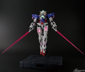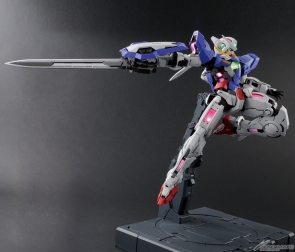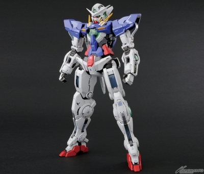 「PG 能天使鋼彈」普通版也一同登場!在機械設計師海老川兼武的監修之下,徹底考證「GN粒子」從原動力的「GN爐」(太陽爐)傳遞至全身的機構!將導引出的設計調整及內部骨架構造具體化!另外,本商品更採用金屬感貼紙,可利用光的反射來表現發光部位!