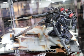 「上層是架著BIG GUN的德姆,下層則是使用了人物模型營造場景,成功地表現出『雷霆宙域戰線』的世界觀,收音機等小配件的使用方式也相當優秀。」(BANDAI HOBBY事業部 安永亮彦)