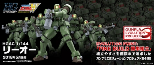 為迎接鋼彈模型40週年的「GUNPLA EVOLUTION PROJECT」第4彈,決定於5月發售『新機動戰記鋼彈W』中的「HGAC 里歐」,價格為1,080日圓(含稅)。