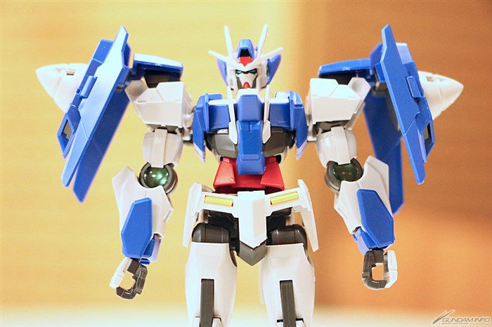 ▲將各部位組裝後就完成以00鋼彈為基礎的「HGBD 潛網型00鋼彈」了!