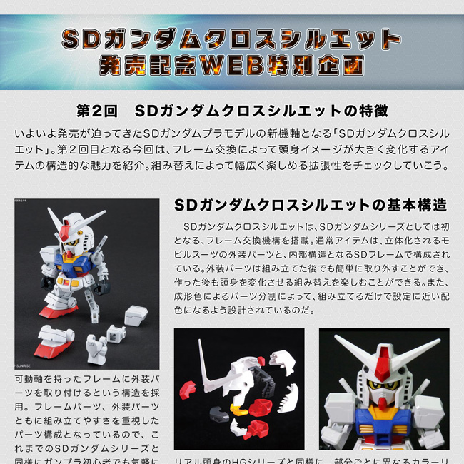 BANDAI HOBBY SITE公開了第2回「SD鋼彈 CROSS SILHOUETTE發售紀念WEB特別企劃」。