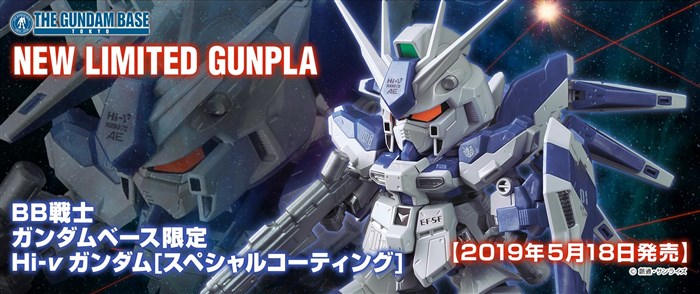 「BB戰士 Hi-ν鋼彈」以鋼彈基地限定特殊鍍膜版本登場。眼球的有無可透過選擇替換零件再現,也可射出浮游砲。還有附屬了光束步槍等等多款武器和展示底座。