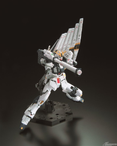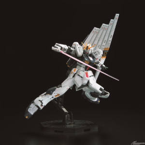 在”ν鋼彈”白色的本體上使用了灰色等3種顏色。以成形色再現了標誌性的配色。藉由肩部和腹部內藏的關節可以擺出扭腰害肩部的拉出,腰部關節則可擺出膝部大幅向前突出的動作。此外,腳部也搭載了隨著各關節的可動連動,使裝甲滑動的「多連桿構造」,可以實現不符彎曲膝蓋的姿勢。