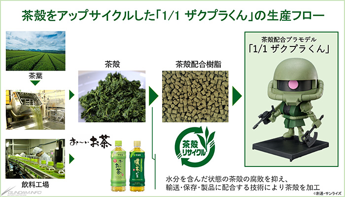 將「伊藤園綠茶Oi Ocha」等飲品生產過程產生的茶渣進行再循環利用!茶渣成分鋼彈模型「1/1 薩克模型君」登場!