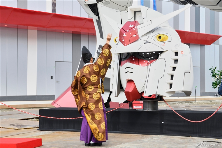 ※關於「上頭式」……本企劃參考傳統建築工地在完成骨架後進行的「上棟式」,將實物大鋼彈立像的頭部安裝過程中舉行的安全祈願儀式,因此命名為「上頭式」。
