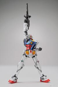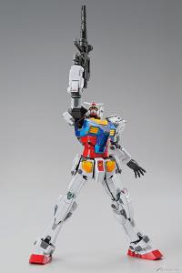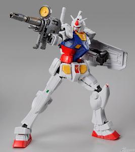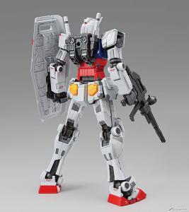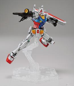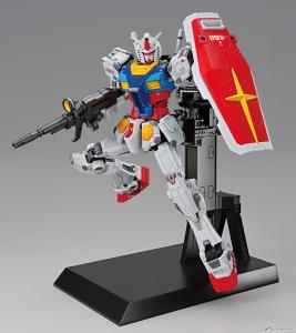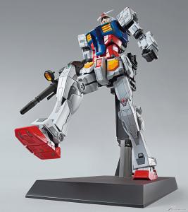 除了以1/100比例重現會動的實體大鋼彈的歩行、舉起右手,舉起雙手等動作外,還重現了細節及配色。不只有亮面貼紙、標誌貼紙,還附有商品原創專用底座、步槍、盾牌。