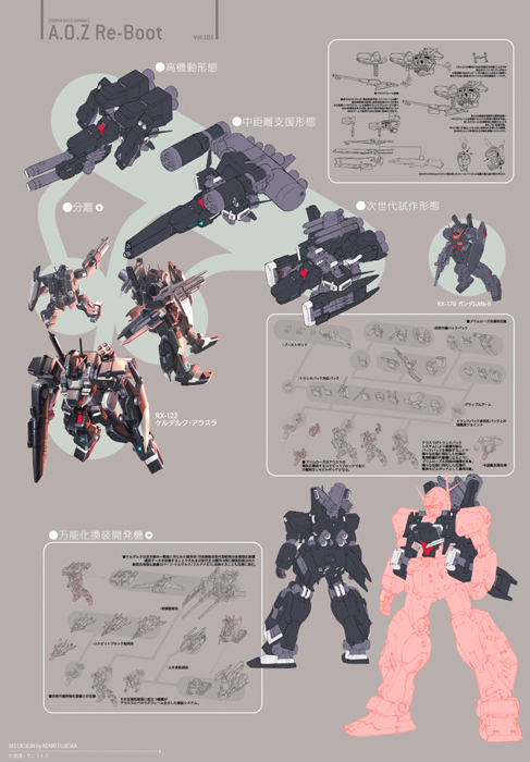 “A.O.Z Re-Boot”是與藤岡健木的漫畫“A.O.Z Re-Boot鋼彈Inle -Kurosagi no Mita Yume-”相關的一系列新繪製的插圖。