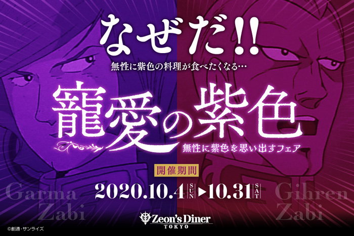 體驗型娛樂餐廳設施「GUNDAM Café TOKYO BRAND CORE(GUNDAM Café TOKYO)」,將於10月4日(日)起舉辦「寵愛的紫色~讓人不由自主想起紫色的祭典~」。