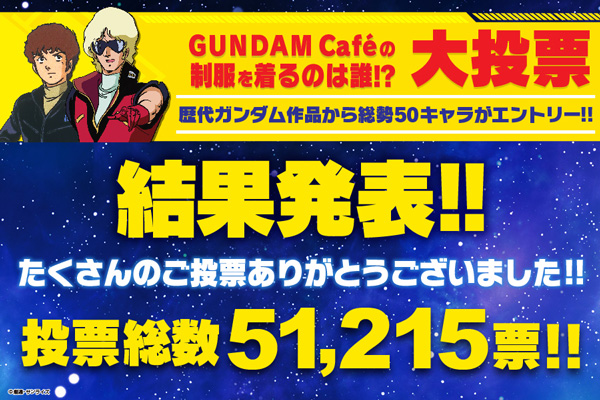 投票總數51,215票!「穿上GUNDAM Café制服的會是誰!?大投票!」結果發表!