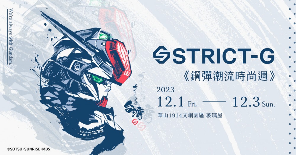 STRICT-G登台三週年企劃最終章,屬於鋼彈粉絲的年度盛會《鋼彈潮流時尚週》於12月1日至12月3日在華山文創園區玻璃屋舉辦為期三天的活動,將帶給粉絲們前所未有的鋼彈時尚體驗!