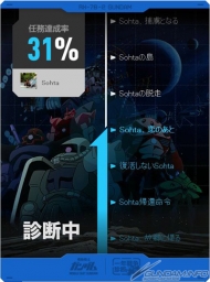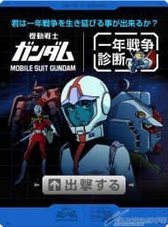 「一年戰爭測驗」承襲『機動戰士鋼彈』的世界觀,測驗使用者是否能在一年戰爭中存活的APP。只要按下「出撃」按鈕的簡單操作,就會出現附有截圖的測驗結果。