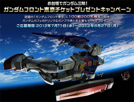 只要註冊成為PREMIUM BANDAI的會員,並訂閱鋼彈系列的商品情報mail magazine「GUNDAM SHOPPING NEWS」,就有機會抽中包含「GUNDAM FRONT東京」入場門票、「GUNDAM Café Diver City Tokyo Plaza店」的飲料和鋼彈燒,以及店內限定的橡膠製吉祥物玩偶,總計抽出100組200名贈送好禮。